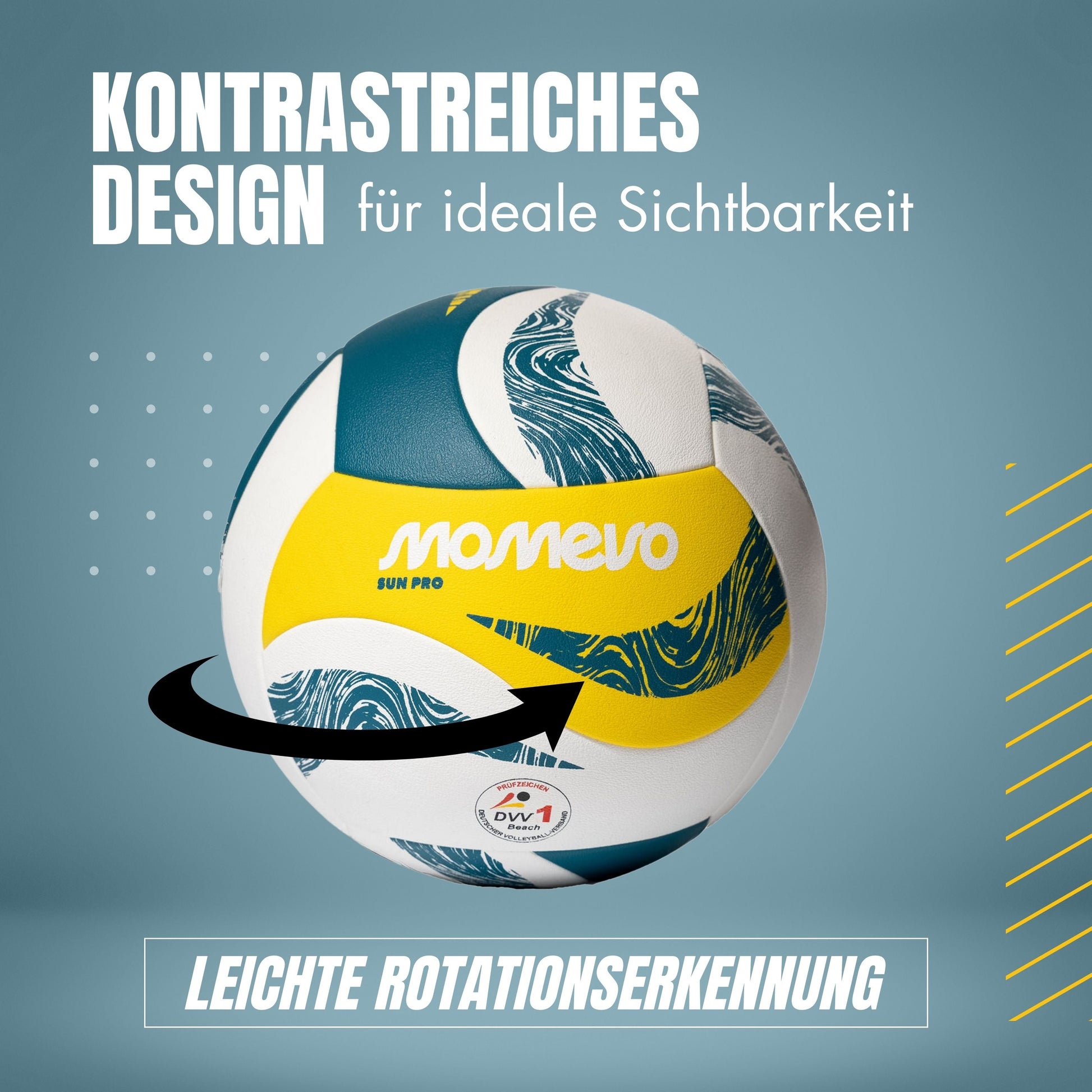 - Design und Sichtbarkeit: Das kontrastreiche, wellenförmige Design sorgt für optimale Erkennbarkeit im Sand, auch unter verschiedenen Lichtbedingungen erkennst du so die Rotation des Balls
